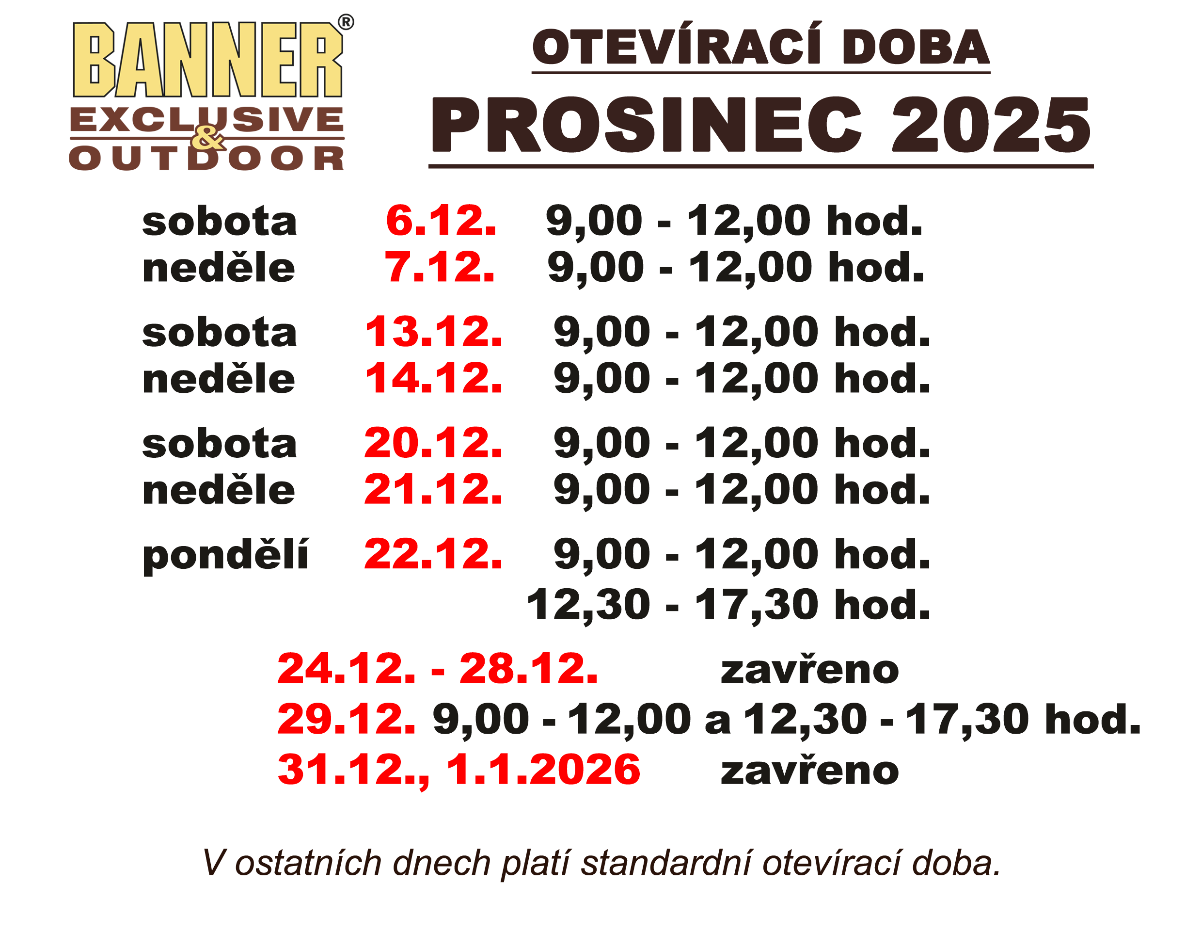 Prodejna BANNER Exclusive & Outdoor – místo pro Váš nákup s garantovanou kvalitou služeb, s vysokou úrovní kvality výrobků a širokou nabídkou produktů, včetně plného velikostního sortimentu oděvů.