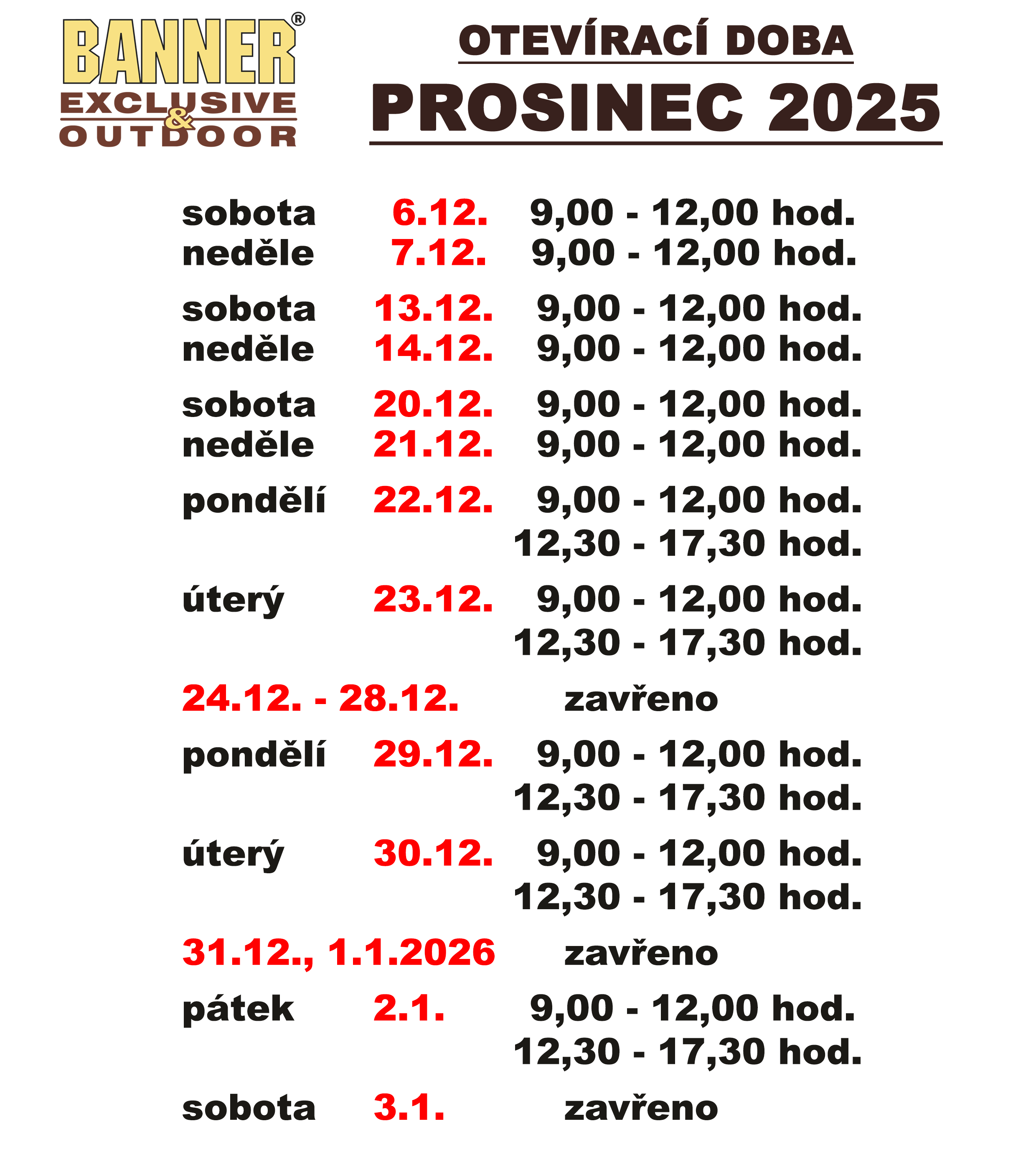 Prodejna BANNER Exclusive & Outdoor – místo pro Váš nákup s garantovanou kvalitou služeb, s vysokou úrovní kvality výrobků a širokou nabídkou produktů, včetně plného velikostního sortimentu oděvů.