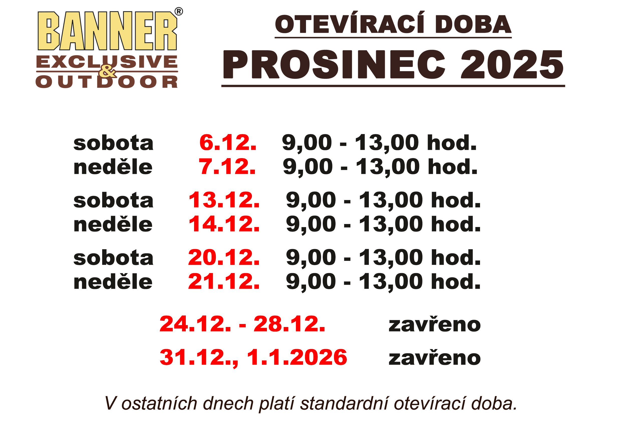 Prodejna BANNER Exclusive & Outdoor – místo pro Váš nákup s garantovanou kvalitou služeb, s vysokou úrovní kvality výrobků a širokou nabídkou produktů, včetně plného velikostního sortimentu oděvů.