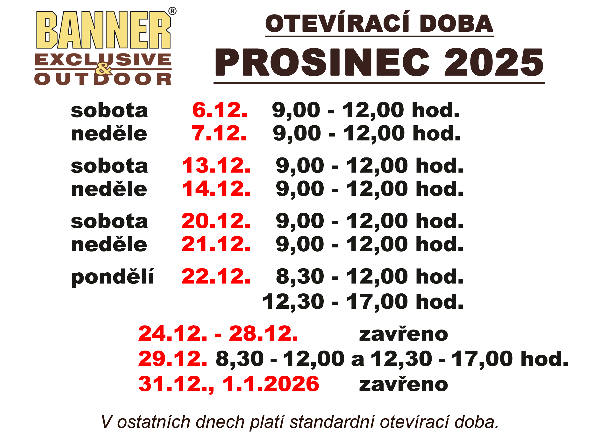 OTEVÍRACÍ DOBU - více informací níže
